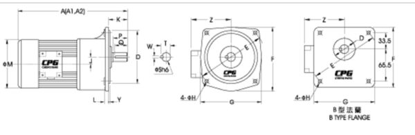 สเปค – ขนาด มอเตอร์เกียร์ 5 แรงม้า 380V. / 3 เฟส แบบหน้าแปลน CPG รุ่น CV-S